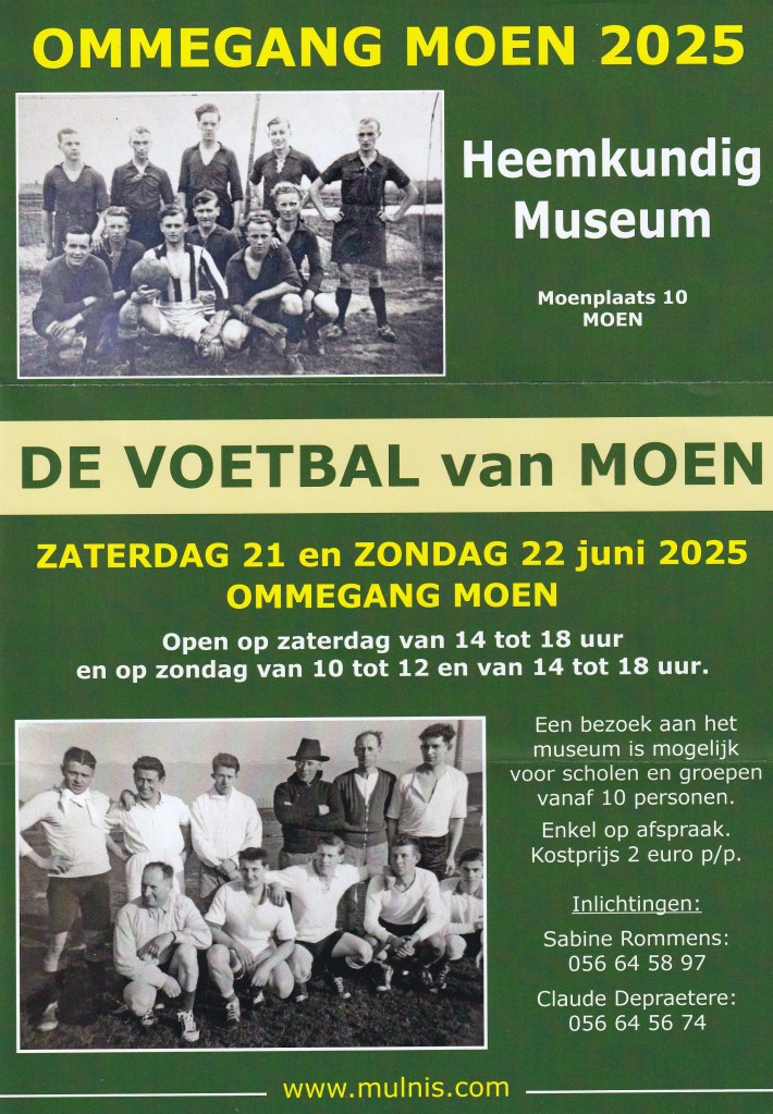 Mulnis EXPO “De Voetbal van Moen” by Dirk Rommens Dit delen: Delen op X (Opent in een nieuw venster) X Share op Facebook (Opent in een nieuw venster) Facebook Vind-ik-leuk Aan het laden... Gerelateerd 12 juni 2025