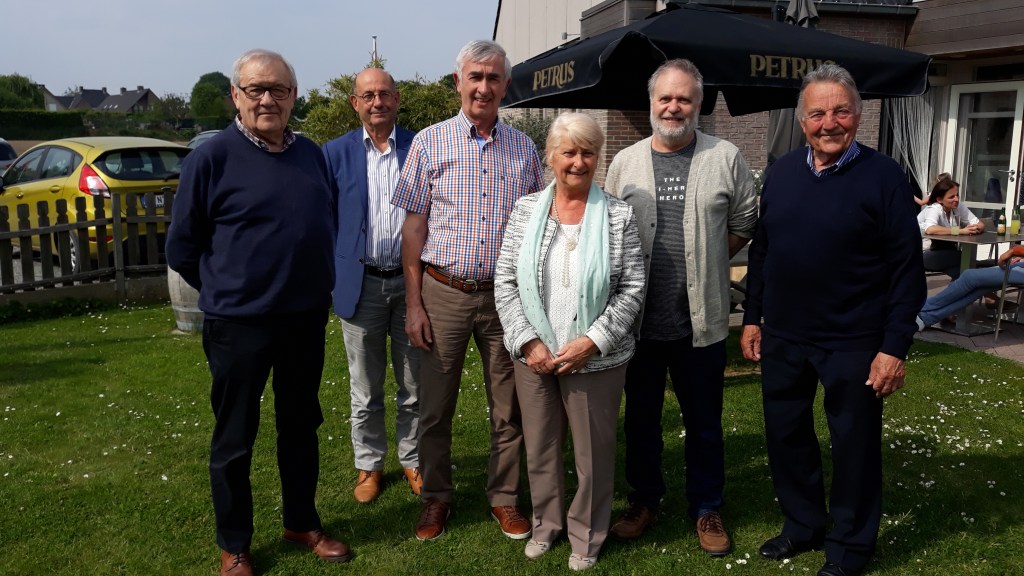Vlnr John Matton, Alain Thomas, J.-Claude Depraetere (secretaris), Sabine Rommens (voorzitster), Ignace Geurts en Germain Van de Populiere (Frans Vercouter ontbreekt)